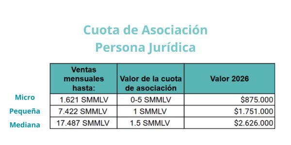 - *Los medios disponibles de pago son: Tarjeta d茅bito/cr茅dito, Efectivo o PSE.聽A continuaci贸n te relacionamos las cuotas de asociaci贸n: